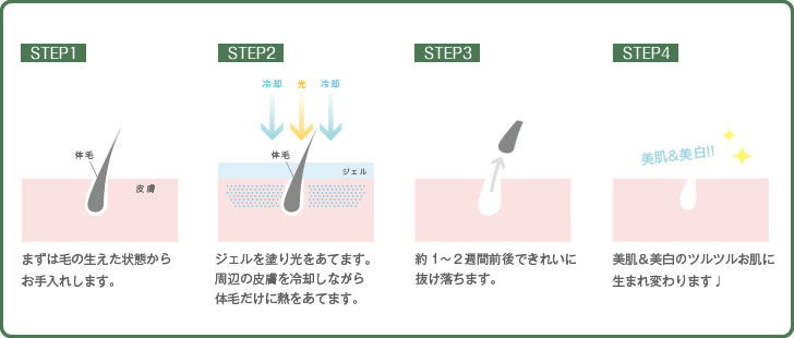 また脱毛の光によるコラーゲン生成効果により美肌美白効果もあり期待できます。